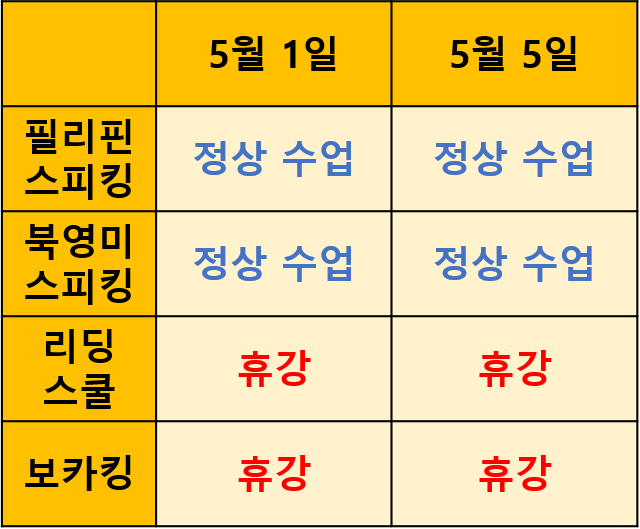 26년 5월 공휴일 정상 수업 안내
