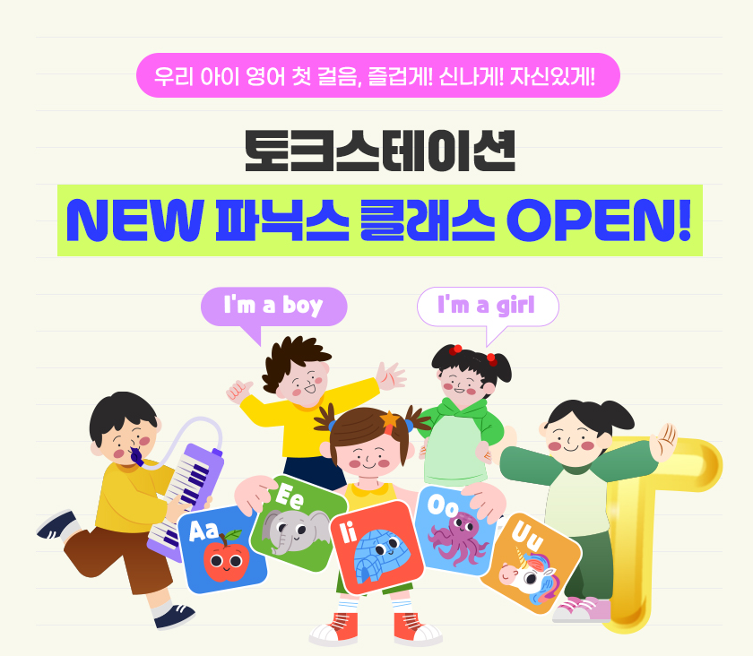 토크스테이션만의 NEW 파닉스 커리큘럼을 개발하였습니다.