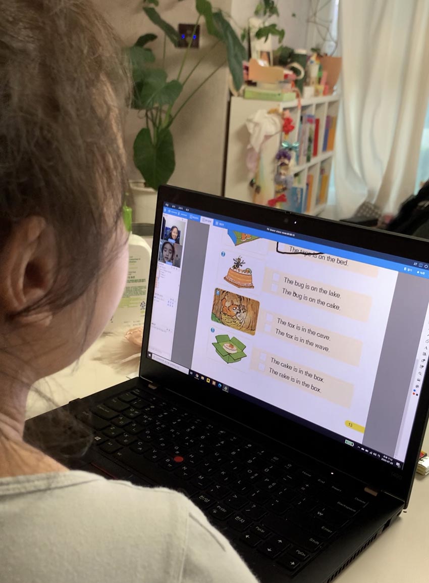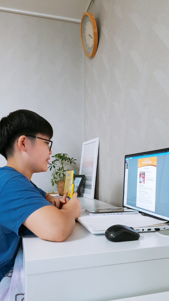 크리시 선생님과 수업 시간입니다. 격려와 응원, 칭찬도 많이 해주셔서 내성적인 아이가