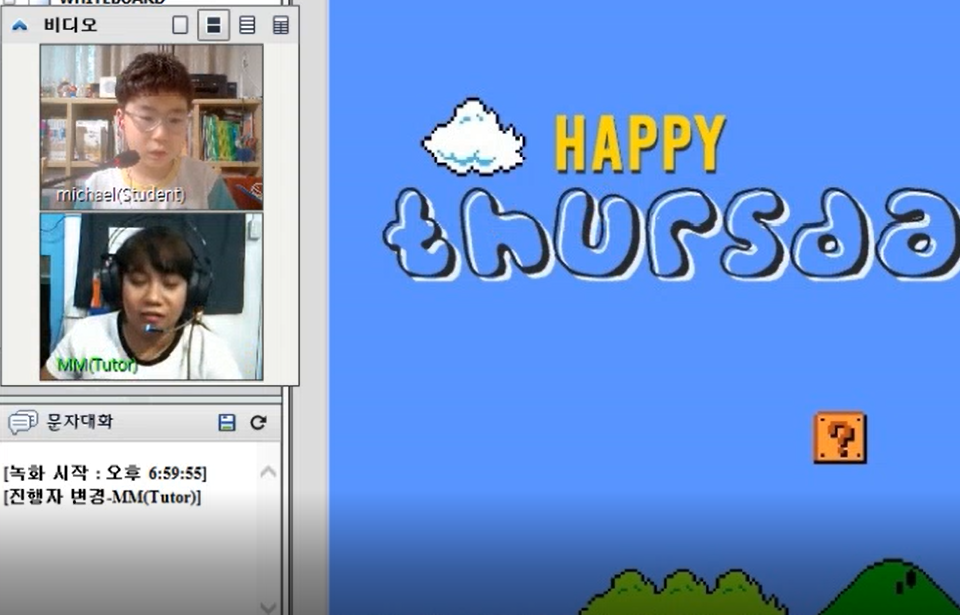 선생님.. 지윤이가 너무나 재밌게 수업하고 있습니다. 처음에는 자주 선생님이 바뀌셔서 잠시? 수업을 안하려고 했거든요,, MM선생님이랑 계속 수업하면서 다시 수업에 흥미를 느끼고 수업듣고 있습니다.