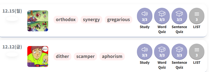 Queenie 선생님은 과제 피드백이 정확하고 피드백 속도가 빨라서 좋습니다. 제가 voca과제방에 올리는 단어들의 쓰임새나 놓치기 쉬운 부분을 꼼꼼하게 봐주시는 편이에요. 현재 보카킹 voca과제방을 통해 매일 단어 학습을 진행하고 있습니다. 혼자 하면 빼먹기 쉬운데 시스템적으로 관리받는 느낌이라 꾸준히 하게 되네요. 첨부한 사진처럼 매일 일정량을 채우다 보니 확실히 이전보다 어휘력이 늘어난 게 느껴집니다.