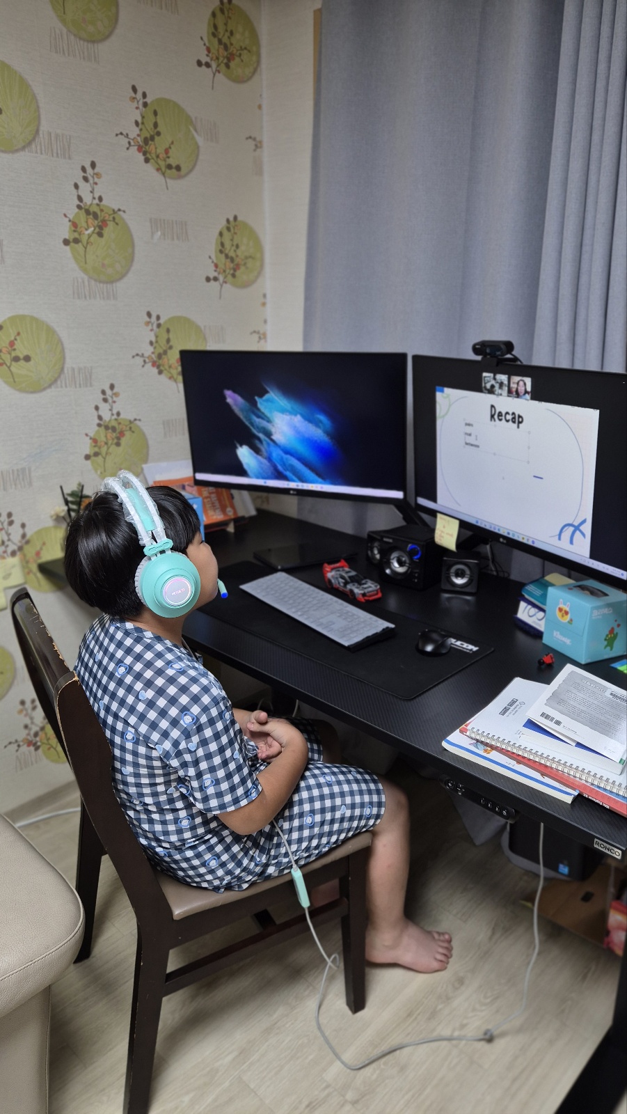 아이가 선생님과 하는 수업을 무척 즐겁게 참여하고 있습니다.