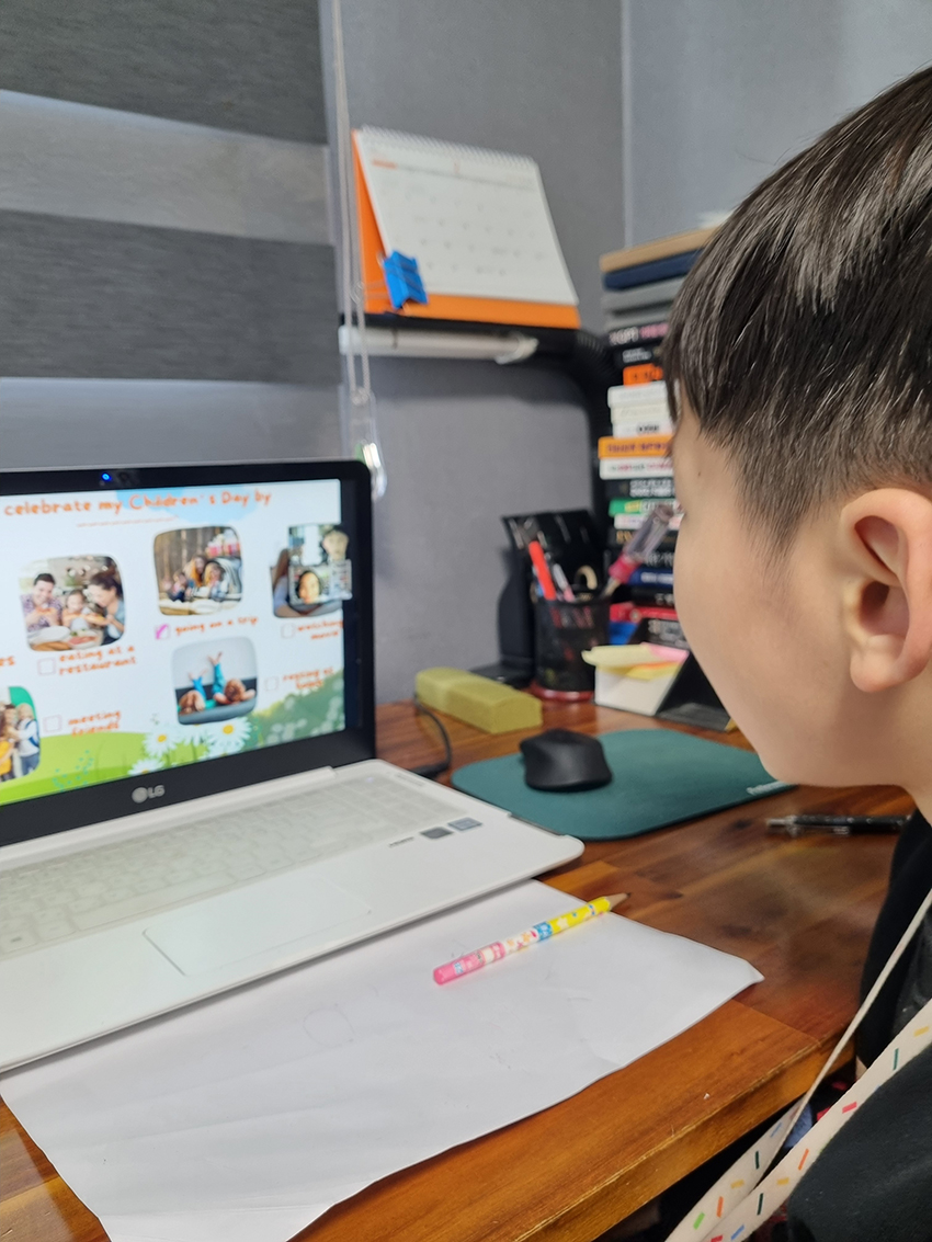 초등학교 1학년 아이 첫 화상수업입니다.