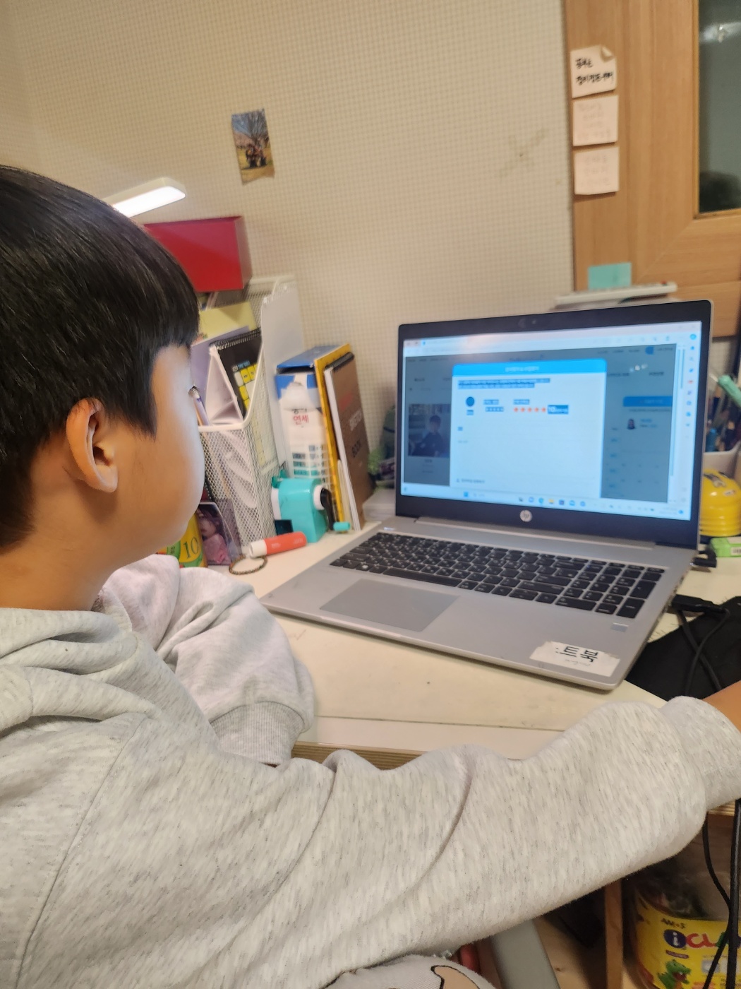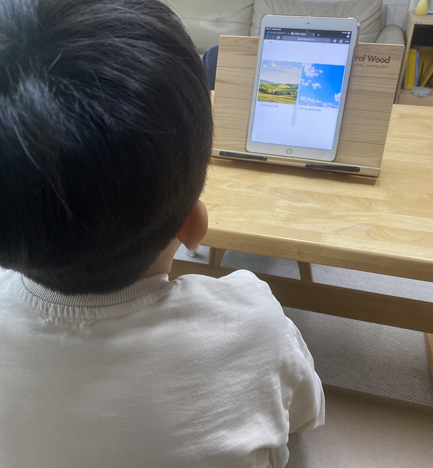 처음에는 많이 부담스러워했는데, 지금은 즐겁게 수업을 받고 있습니다.