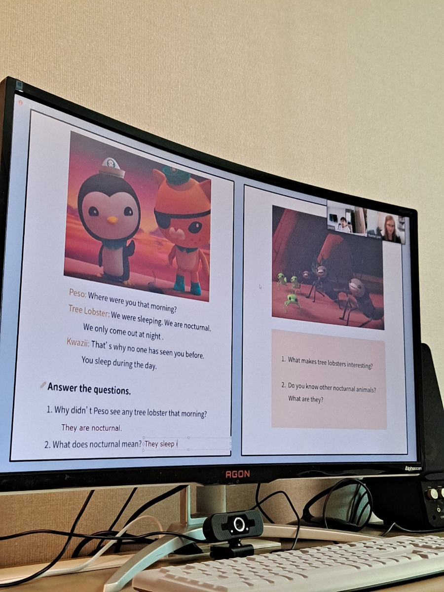 그래도 초등학생 눈높이에 맞추어서 많이 반응해주시고 일상 회화도 많이 진행해주신다는 느낌을 받았습니다.