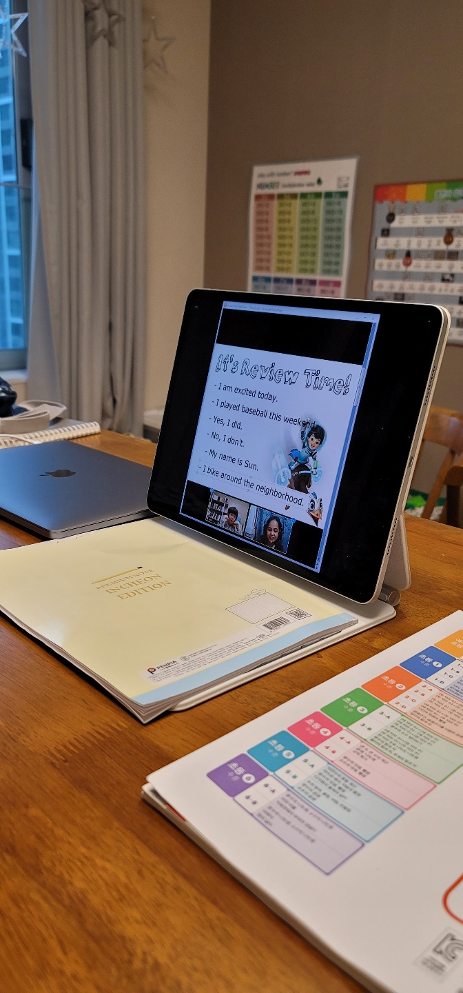 작년 하반기 부터 벌써 6개월 넘게 토크스테이션 수업 주2회 꾸준히 해오고있어요..계속 Alona 선생님이 같이 해주고 계시구요~ 처음에는 코로나 때문에 화상수업을 시작하긴했지만 계속 해보니..학원보다 훨씬 편하고 빠지지않고 지속적으로 하기 좋은것 같아요