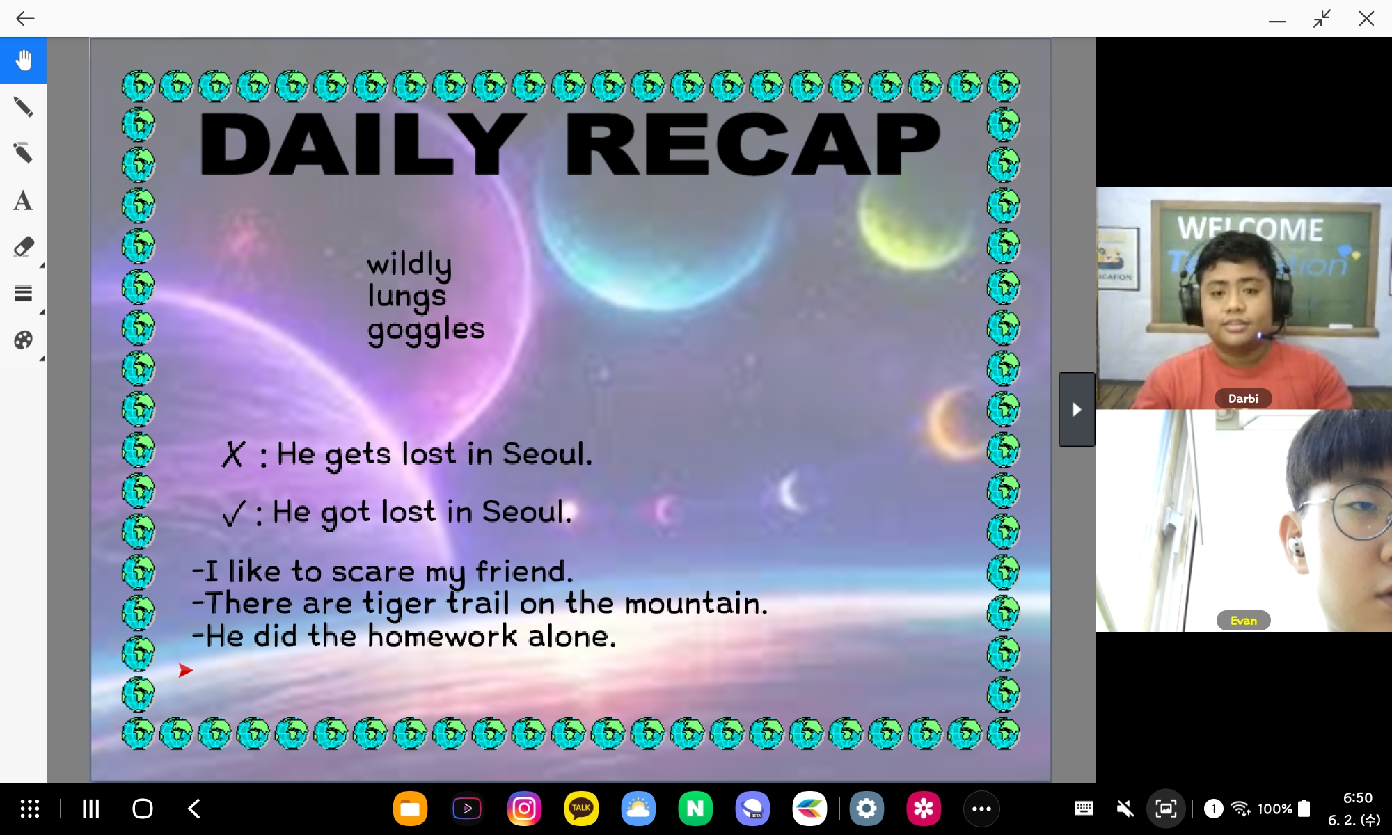 아이는 선생님과의 수업을 Great라고 평하네요~ ^^