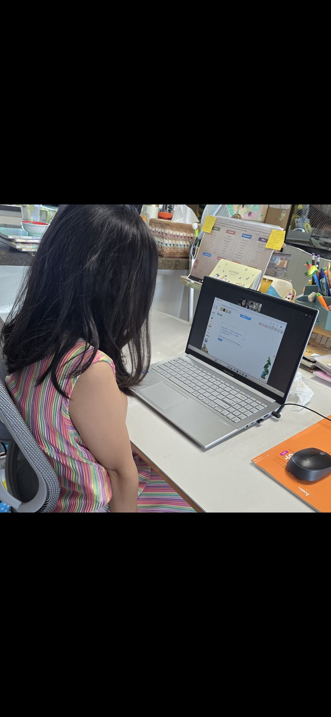 학교 영어 시간이든 집에서 하는 영어든 그냥 영어가 재미있다고 하네요